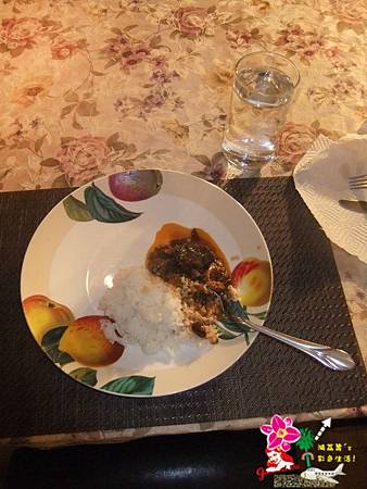 借宿魁北克時,剛果移民請我吃的愛心晚餐 :非洲料理-番茄燉肉配白飯,超好吃的!!肉燉的非常入味!