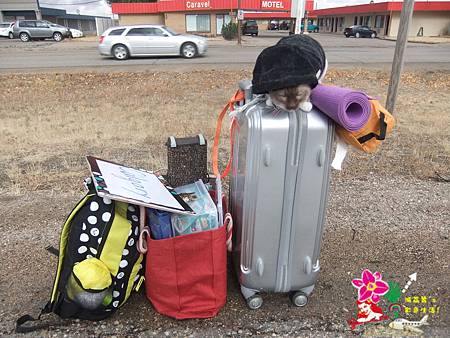 好險,從加油站下車沒一會,馬上有一位媽媽停車願意載我們去卡加利。她說沒辦法忍受如果有怪怪的人載我們,怕我遇到壞人。